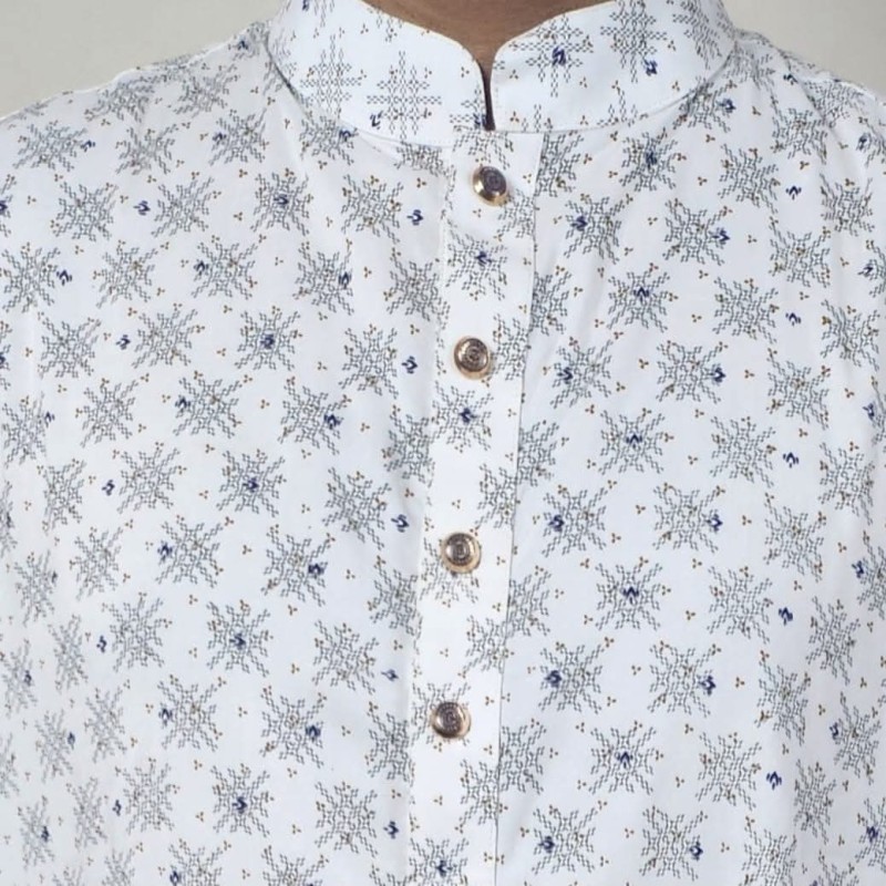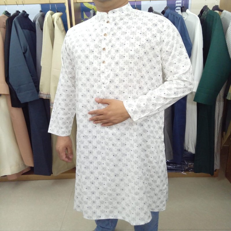 White Printed Cotton Panjabi for Men | Premium All Over Design