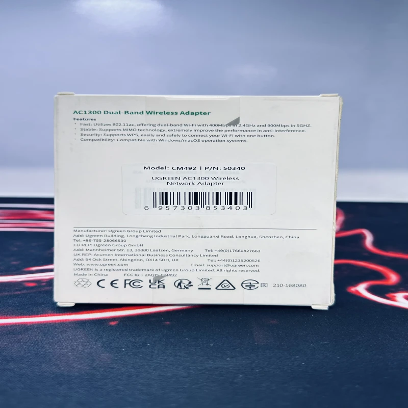 UGREEN AC1300 Dual Band Wireless Adapter আপনার ডেস্কটপ বা ল্যাপটপের জন্য একটি শক্তিশালী ও নির্ভরযোগ্য Wi-Fi সল্যুশন। আধুনিক 802.11ac নেটওয়ার্ক স্ট্যান্ডার্ড ব্যবহার করে এটি দ্রুত ও স্থিতিশীল ইন্টারনেট কানেকশন নিশ্চিত করে।