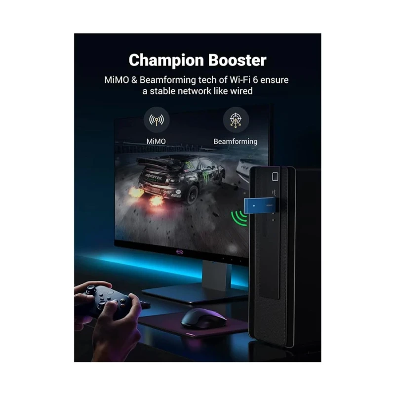 এই অ্যাডাপ্টারটি সর্বোচ্চ 1800Mbps স্পিড (5GHz-এ 1201Mbps + 2.4GHz-এ 574Mbps) সাপোর্ট করে—যা গেমিং, 4K স্ট্রিমিং এবং ভারী ডাউনলোডের জন্য আদর্শ।